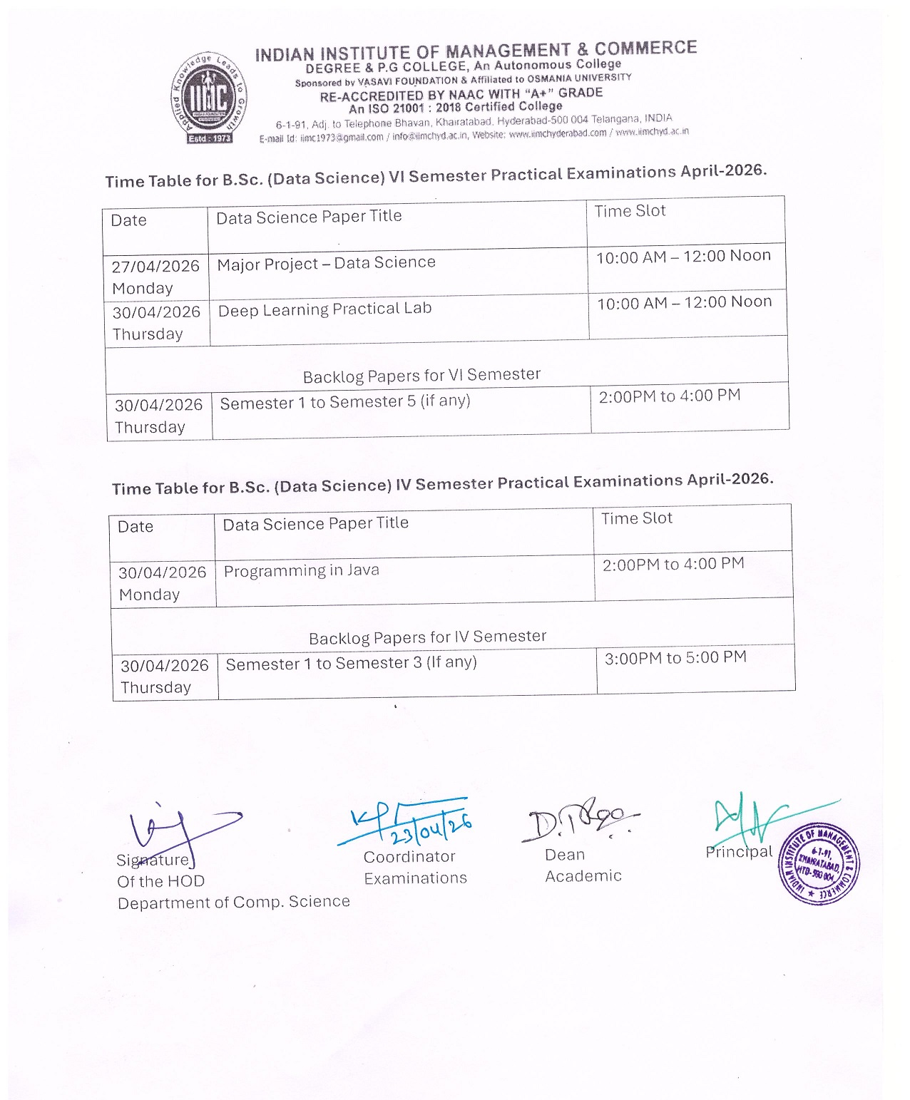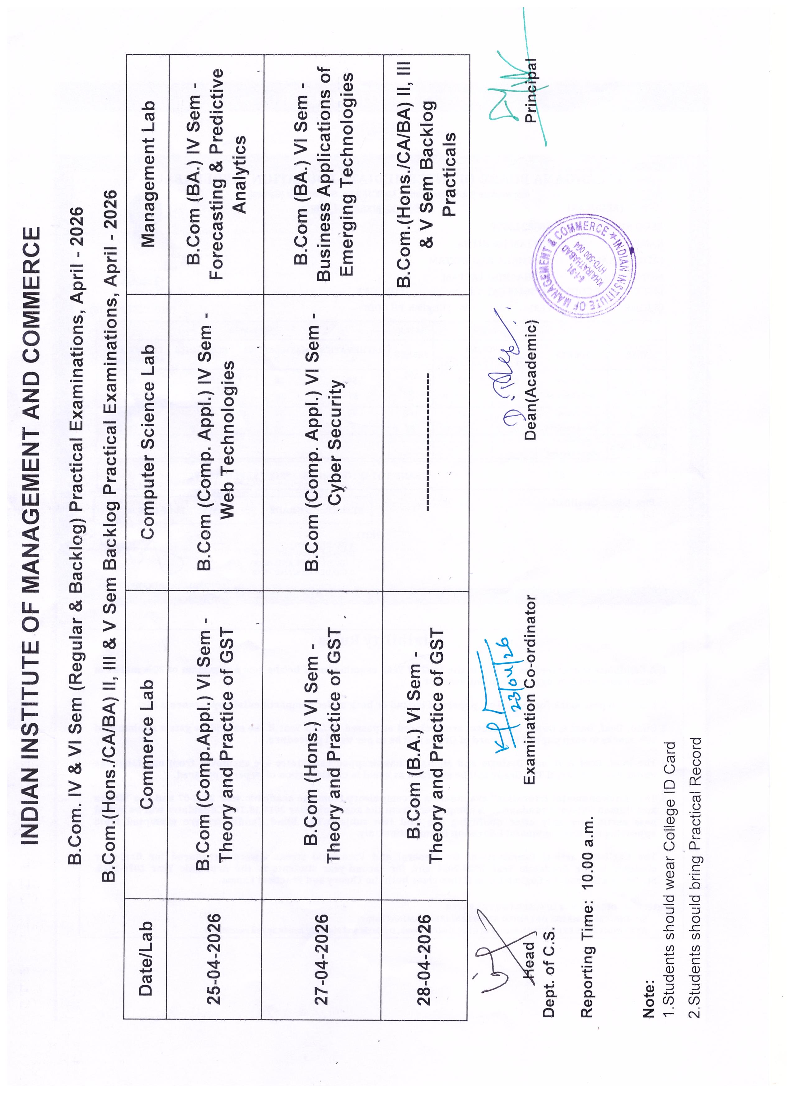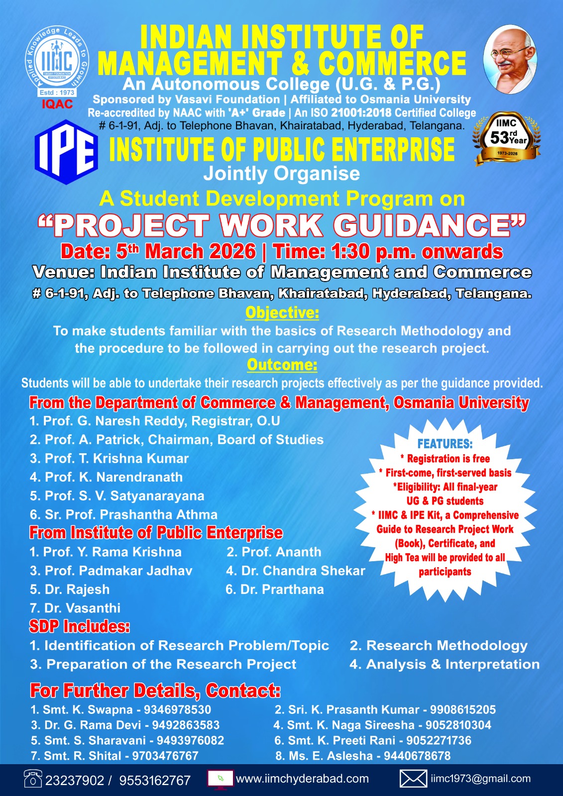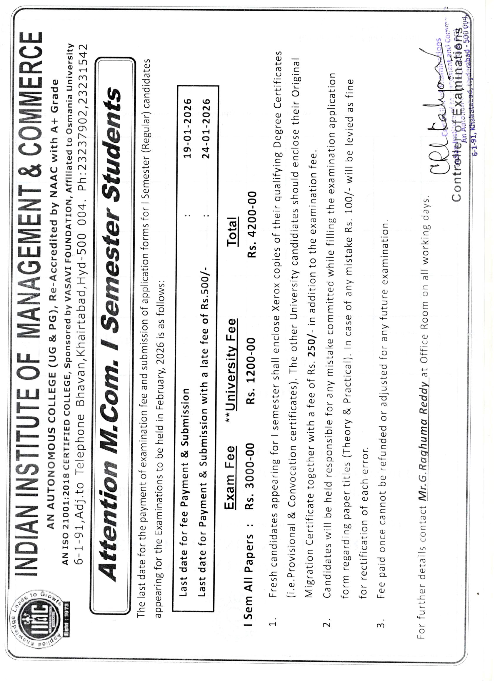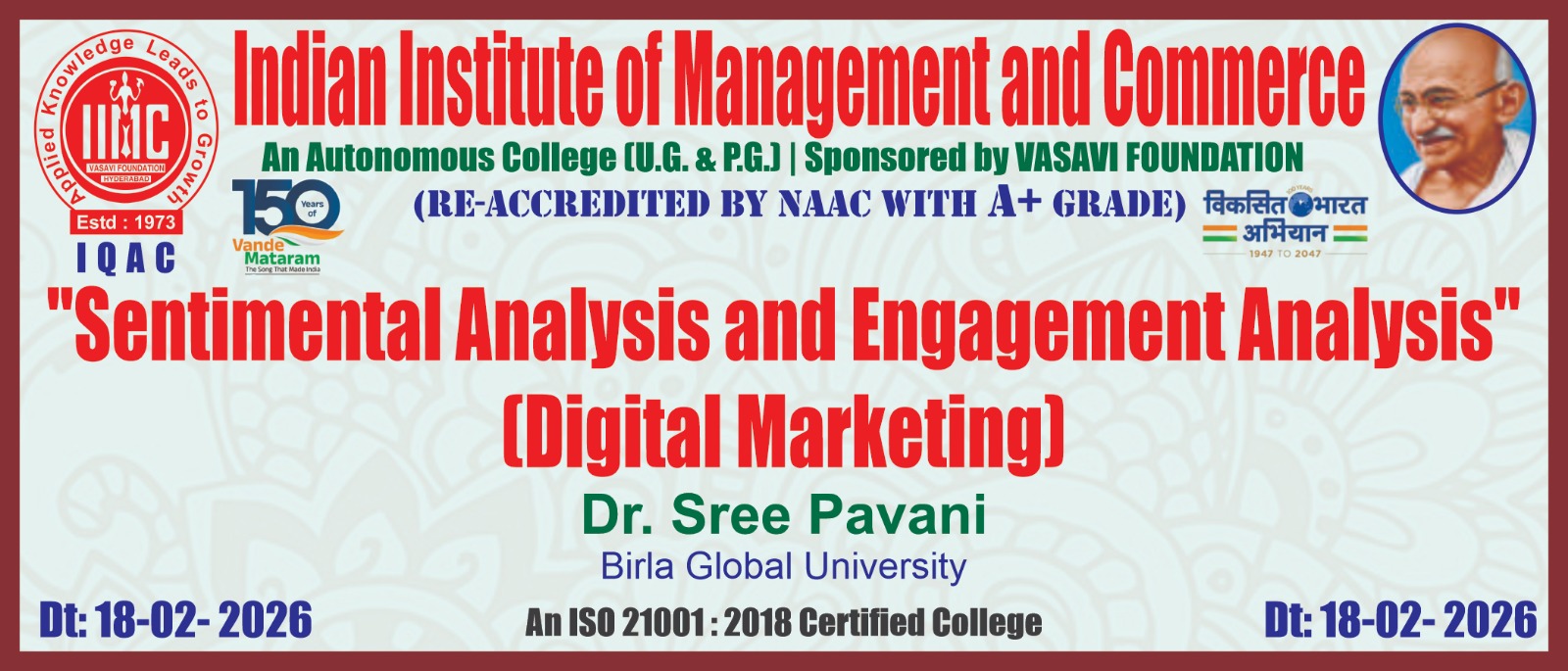 The Indian Institute of Management and Commerce(IIMC) established five decades ago(year 1973) has to its credit some outstanding achievements in the field of Commerce Education in general and Honours course in particular at the Degree level. Eminent social workers and philanthropists and Educationalists like Sri Kothuru Seethaiah Gupta, Sri Challa Som Raj Ram, Sri C.E. Gupta, Sri Dundoo Balanarasaiah, Sri Narayana Chetty IAS(Retd.), Late Sri Veloor Lingaiah Gupta gathered together and laid solid foundation in starting this premier Institution. Members of Vysya Community in particular and admirers of Higher Education in general are greatly beholden to the Founders.