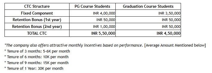 Salary: 3.5 LPA (UG) & 4 LPA (PG)